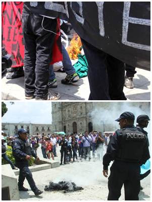 El grupo de presuntos anarquistas realizó varias pintas en las calles durante su marcha que partió del crucero del Instituto Estatal de Educación Pública de Oaxaca (IEEPO) con destino al Zócalo de la ciudad.